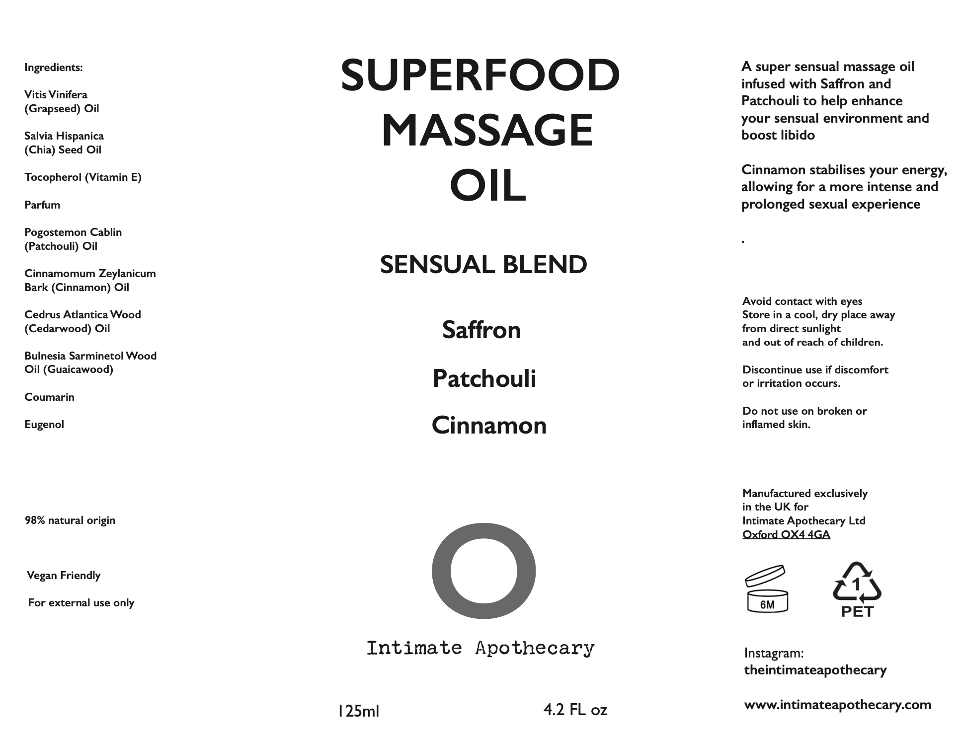 A super sensual massage oil infused with Saffron and Patchouli to help enhance your sensual environment and boost libido.